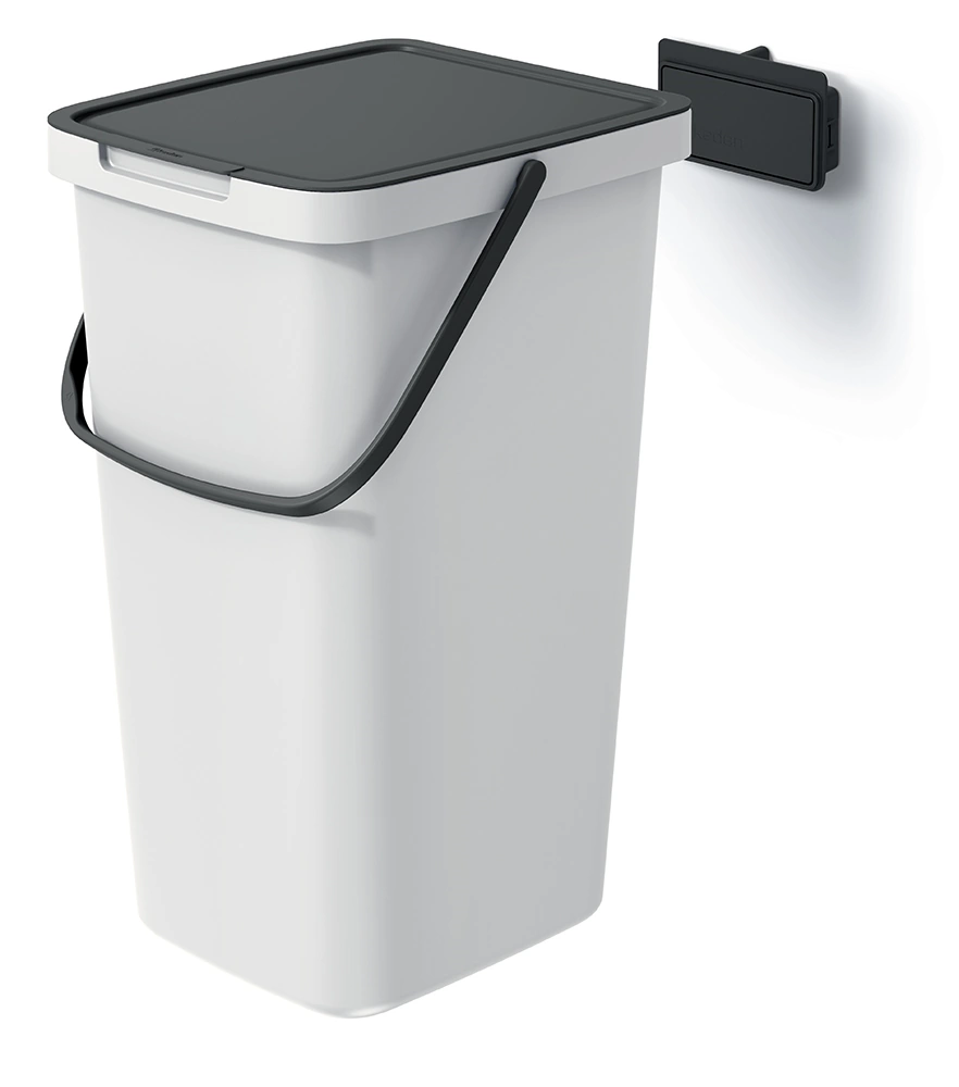 - Specjalny uchwyt umożliwia zawieszenie kosza na ścianie, oszczędzając miejsce.